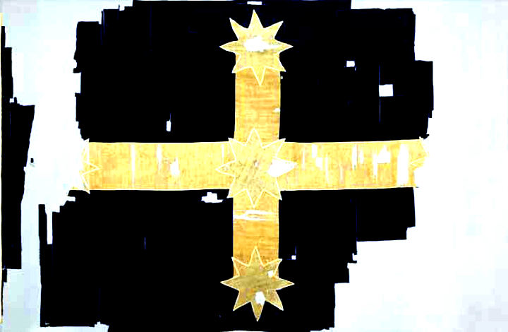 The Eureka revolt and, by extension, the Eureka flag have assumed a quasi-religious status in the memorialised iconography of white nationalism because that event involved the spilling of white men’s blood. The frayed, presumably original version of the Eureka flag is viewed as something like a holy relic by Australian nationalists. It has also been conflated with ‘proletarian revolt’ because of the historical association between early unionism and the formation of the Labor Party (and their shared adherence to the ‘White Australia’ policy) when, in reality, the Eureka rebellion involved white men who were not workers, who individually prospected for gold, did so on land not their own, and who insisted on their divinely-ordained, racially-entitled right to do so.